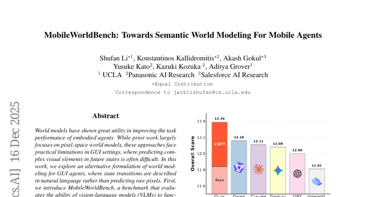 这项由UCLA的李淑帆与Salesforce AI Research的Akash Gokul,以及Panasonic AI Research的多位研究员联合完成的重要研究发表于2024年12月,论文标题为"MobileWorldBench: Towards Semantic World Modeling For Mobile Agents"。这项研究首次为手机智能助手开发了一套全新的"预知系统",让AI能够像人类一样预测手机操作的结果,感兴趣的读者可以通过论文编号arXiv:2512.14014v1查询完整研究内容。